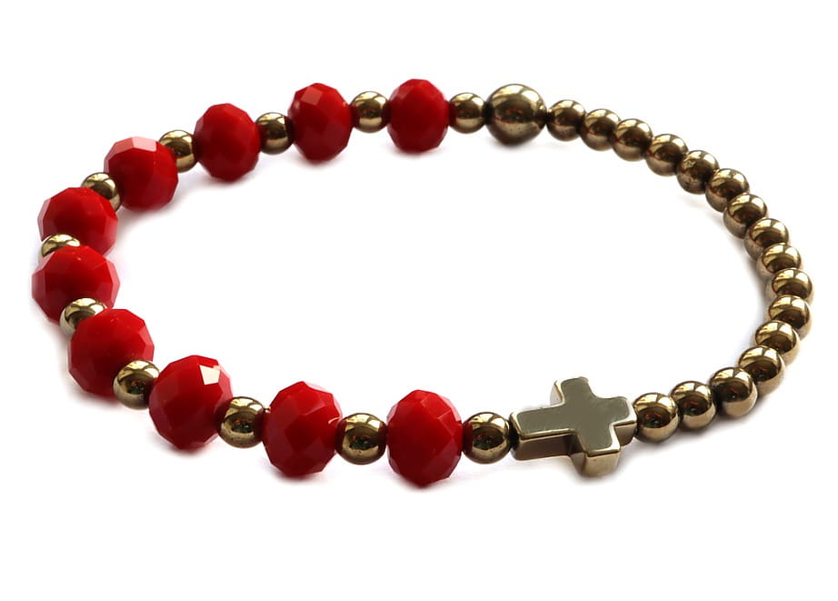Bransoletka różaniec czerwono złota 8382 [k28]