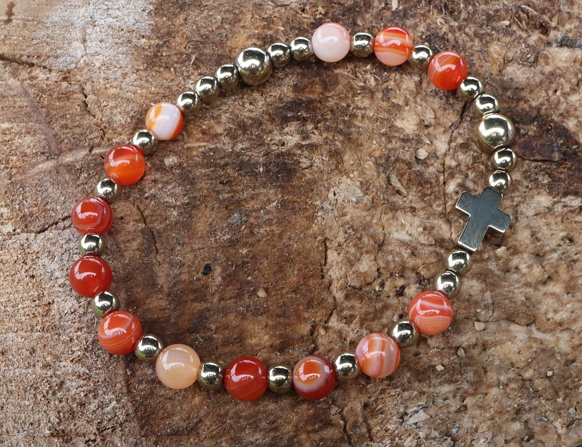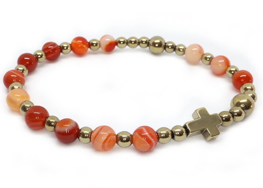 Bransoletka różaniec dziesiątek na rękę - agat rudy w złocie 8909 [p18]