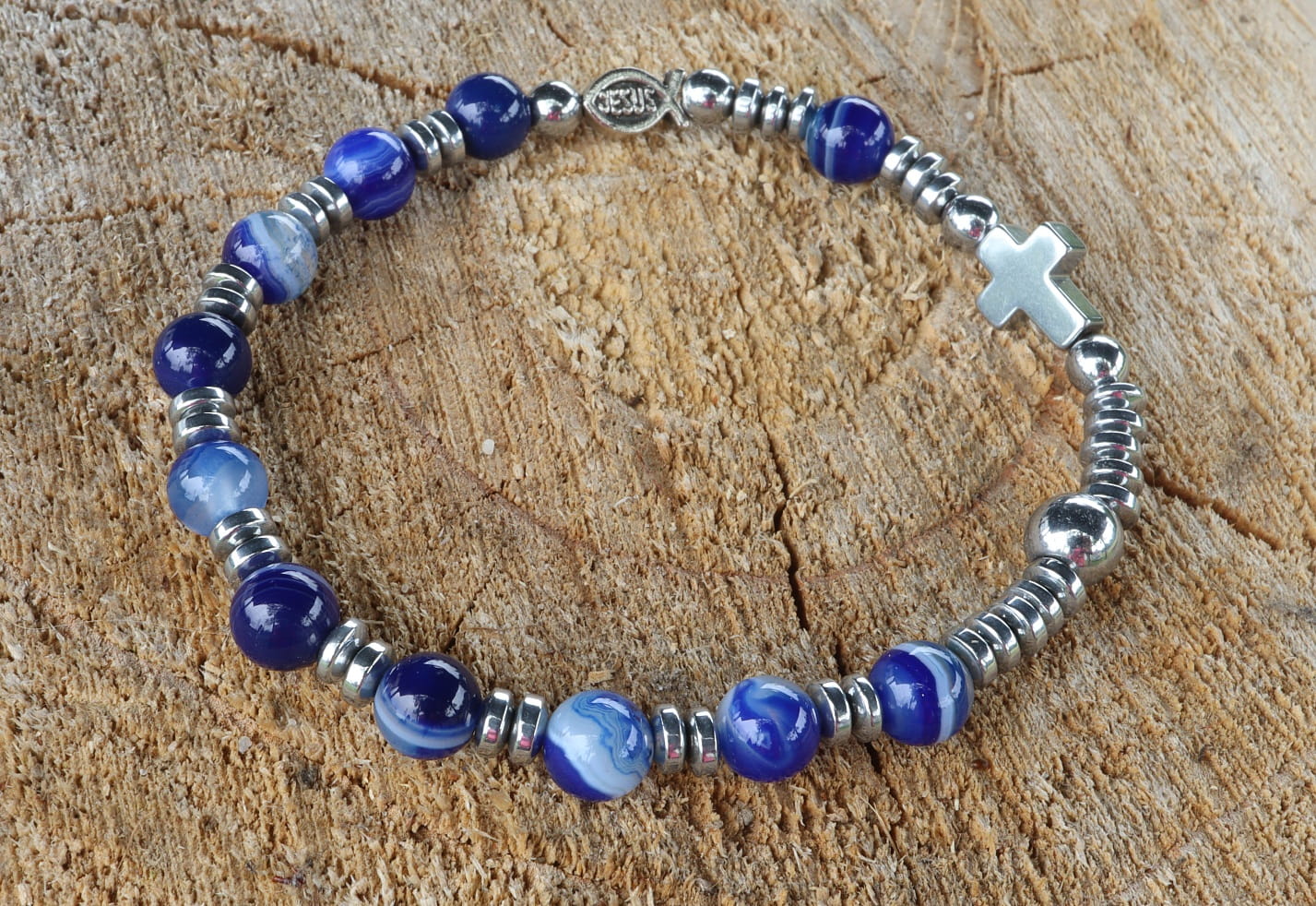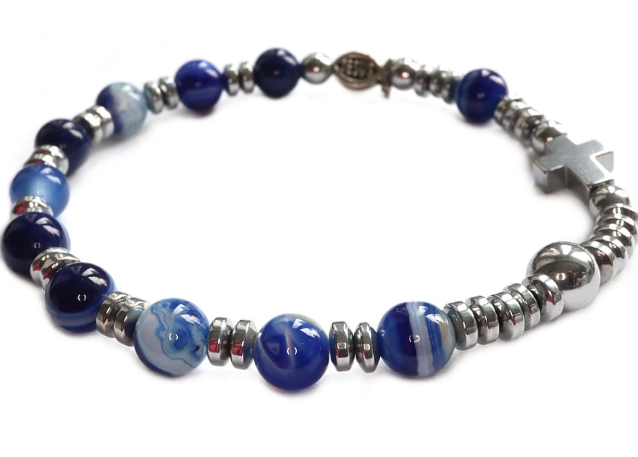 Bransoletka różaniec dziesiątka z agatów granatowych 8832 [55]