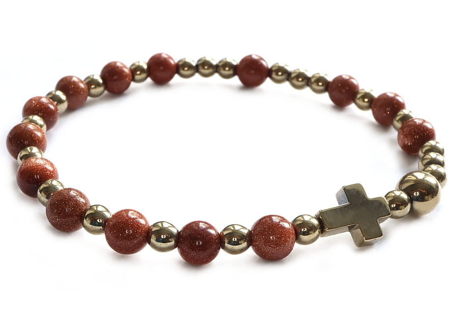 Bransoletka różaniec na rękę piasek pustyni i złoty hematyt - połączenie piękna i duchowości