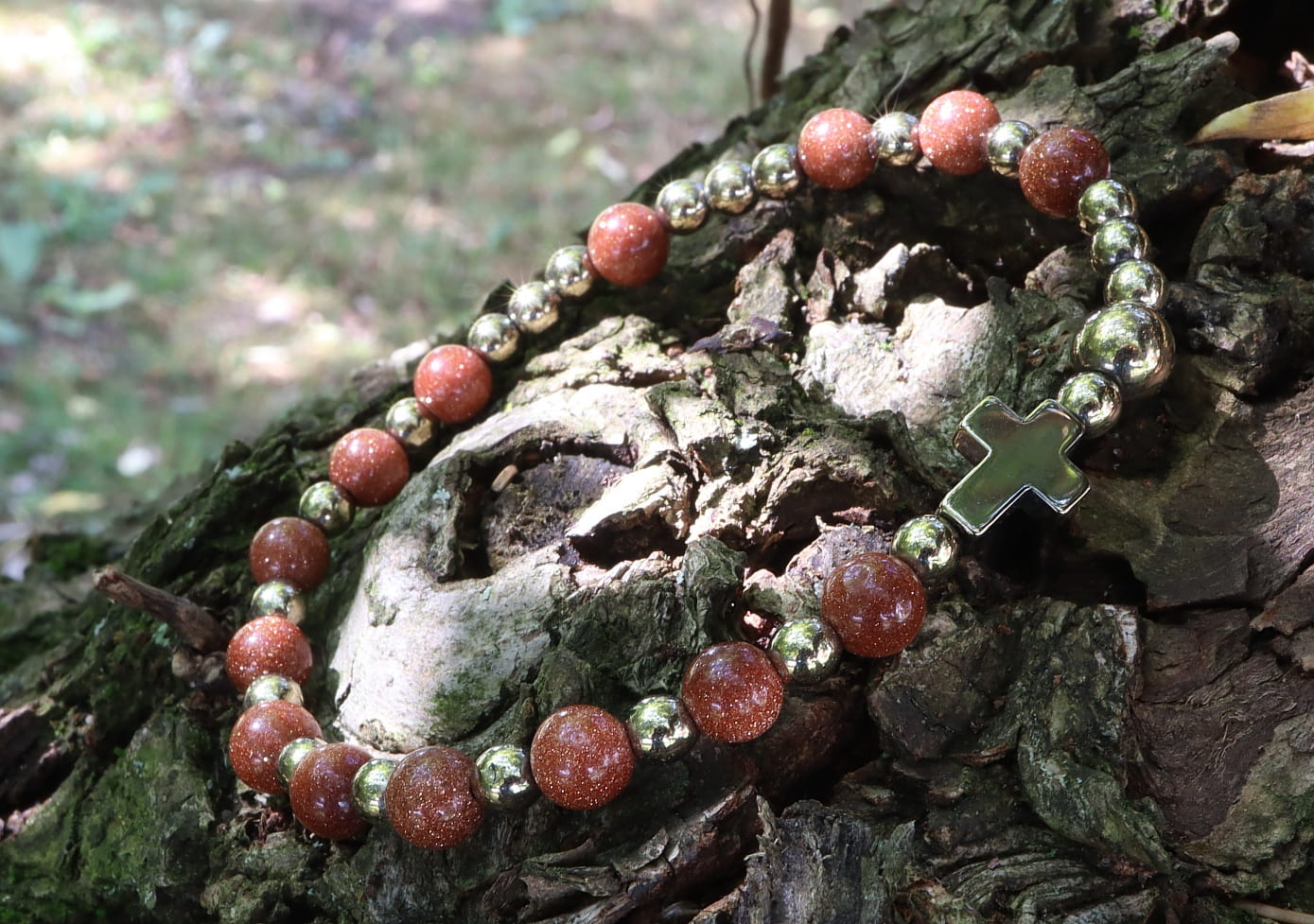 Szukasz wyjątkowej bransoletki, która łączy w sobie piękno natury z głęboką duchowością? Nasza bransoletka różaniec z piasku pustyni i hematytu w kolorze naturalnego złota to idealny wybór!