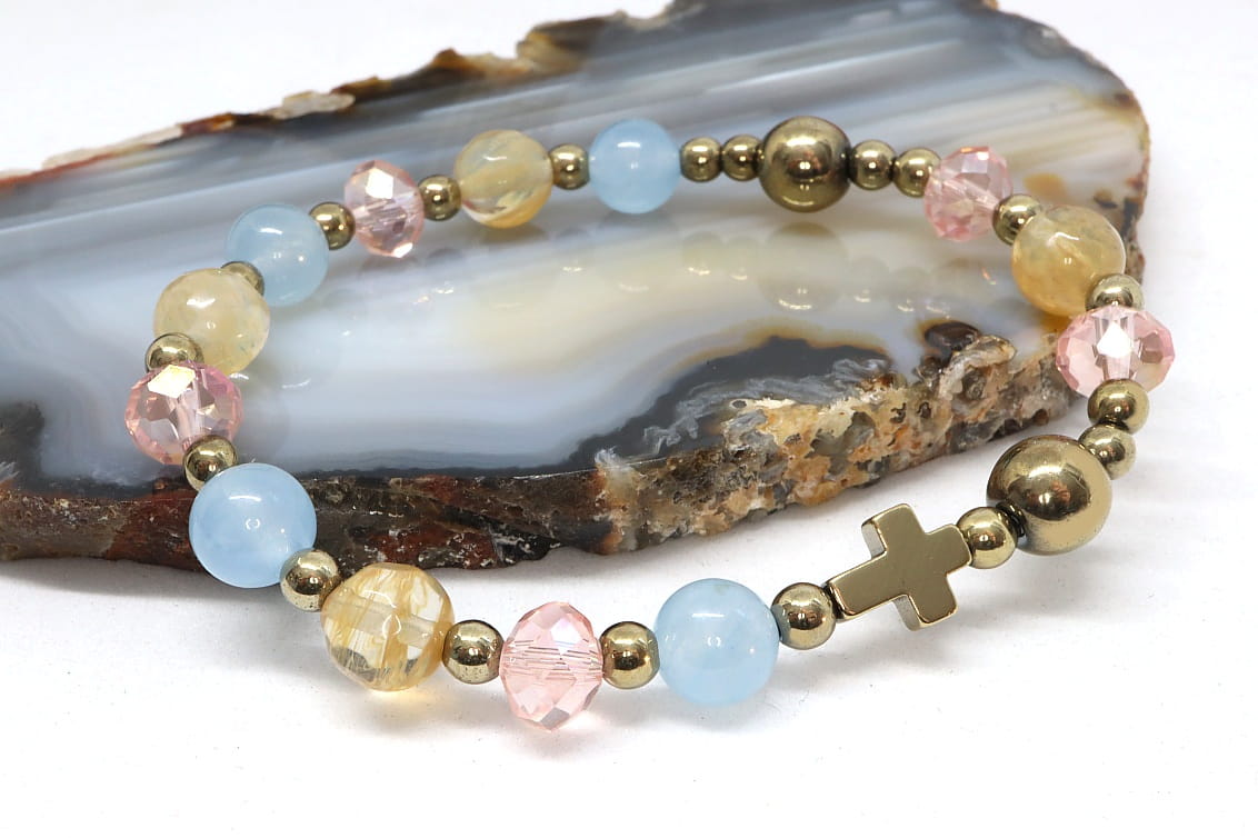 Bransoletka różaniec z kamieni - pastelowy - 9156 [71]