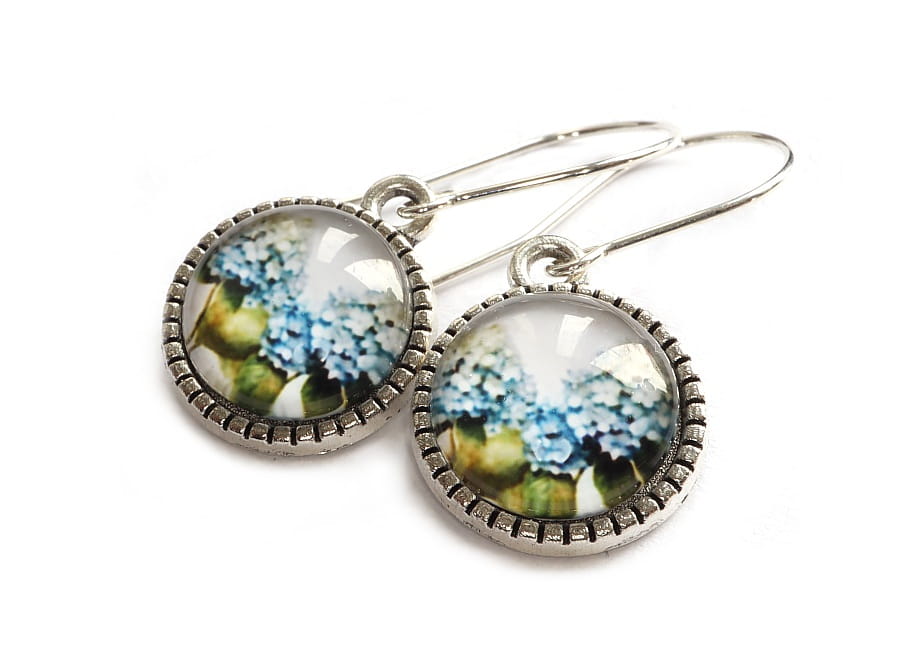 Piękne, kobiece kolczyki z kwiatami hortensji.