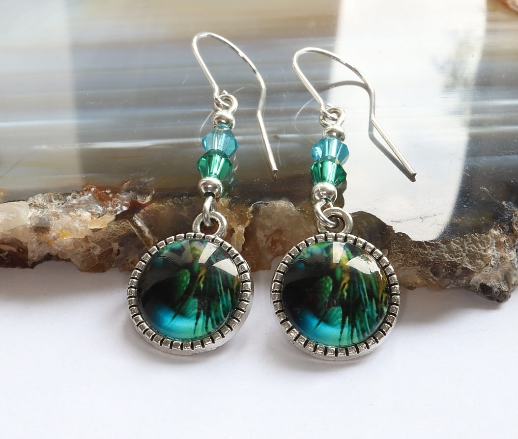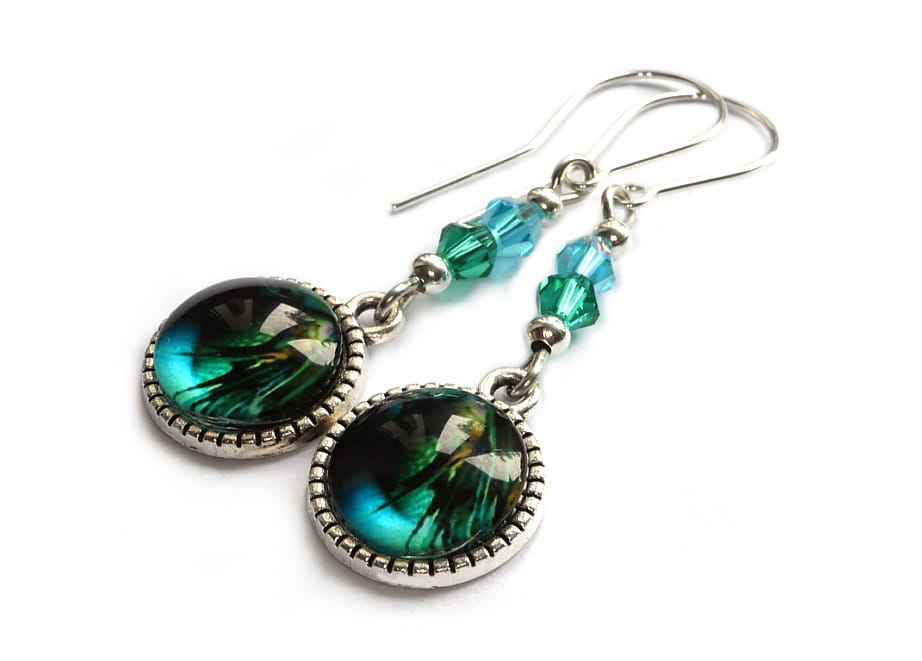 Piękne, stylowe kolczyki w tonacji morskiej - turkusowo zielonej.