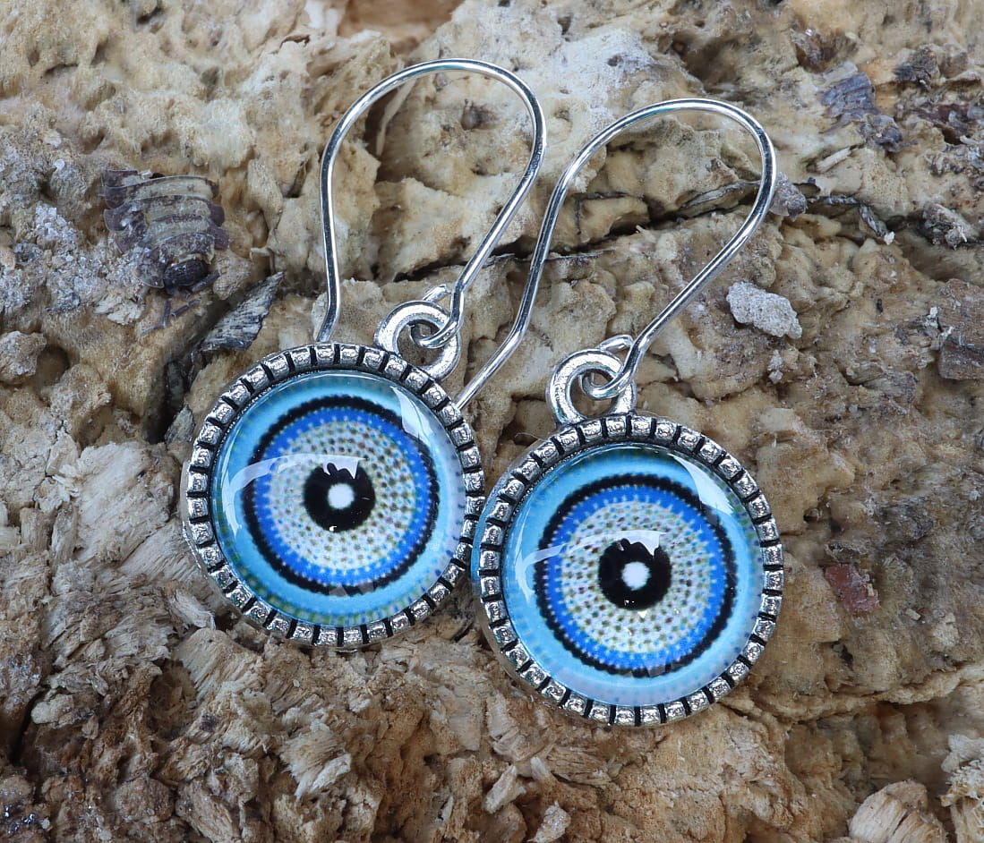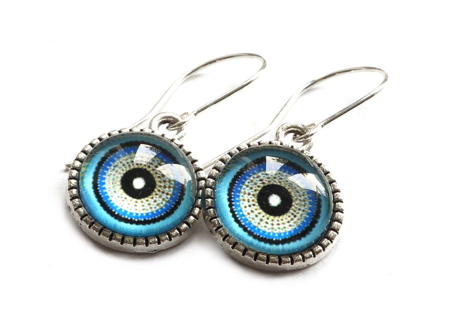 Wykonane są ze szklanych kaboszonów w metalowej oprawie 12mm na srebrnych biglach (ag925)