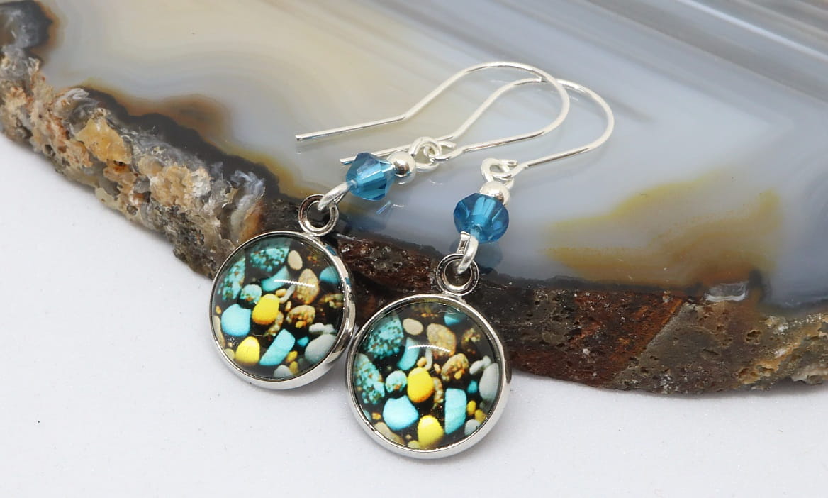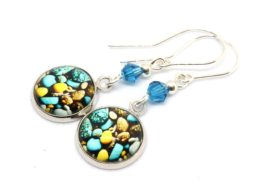 Kolczyki z grafiką kamyczków, turkusowo żółte 9045 [030]