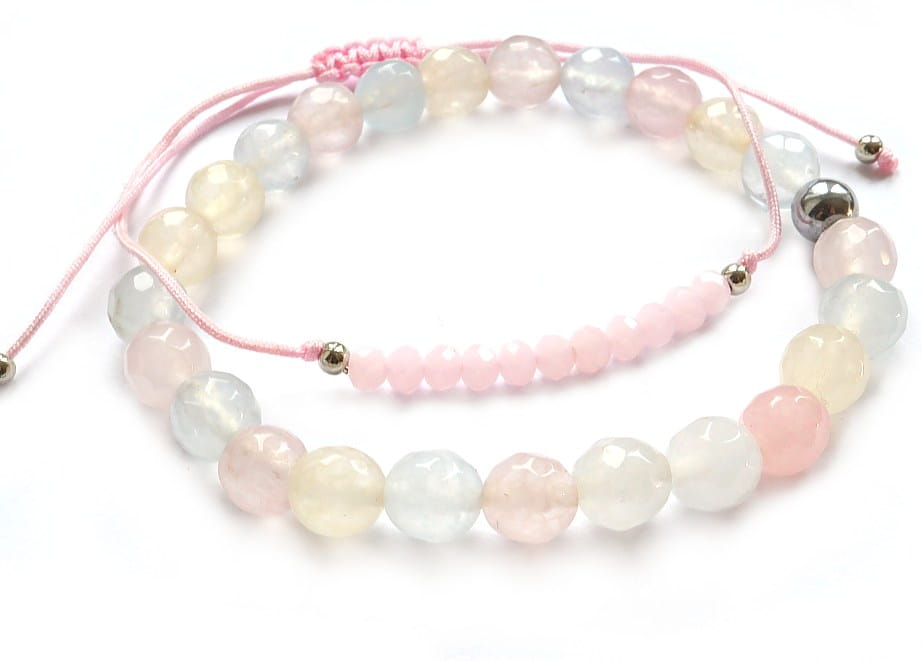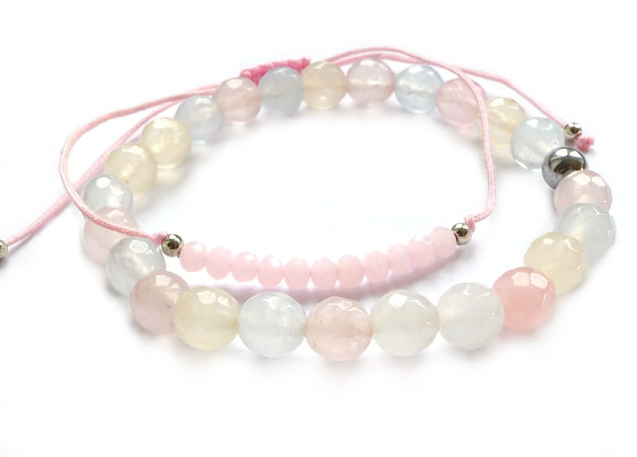 Pierwsza bransoletka wykonana z kamieni jadeitów fasetowanych - bardzo jasne odcienie pudrowego różu, cytryny, mięty i błękitu/ w rozmiarze 8mm.