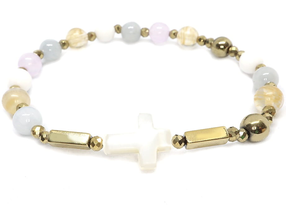 Pastelowe kamienie w złocie - różaniec dziesiątka 9042 [hb27]