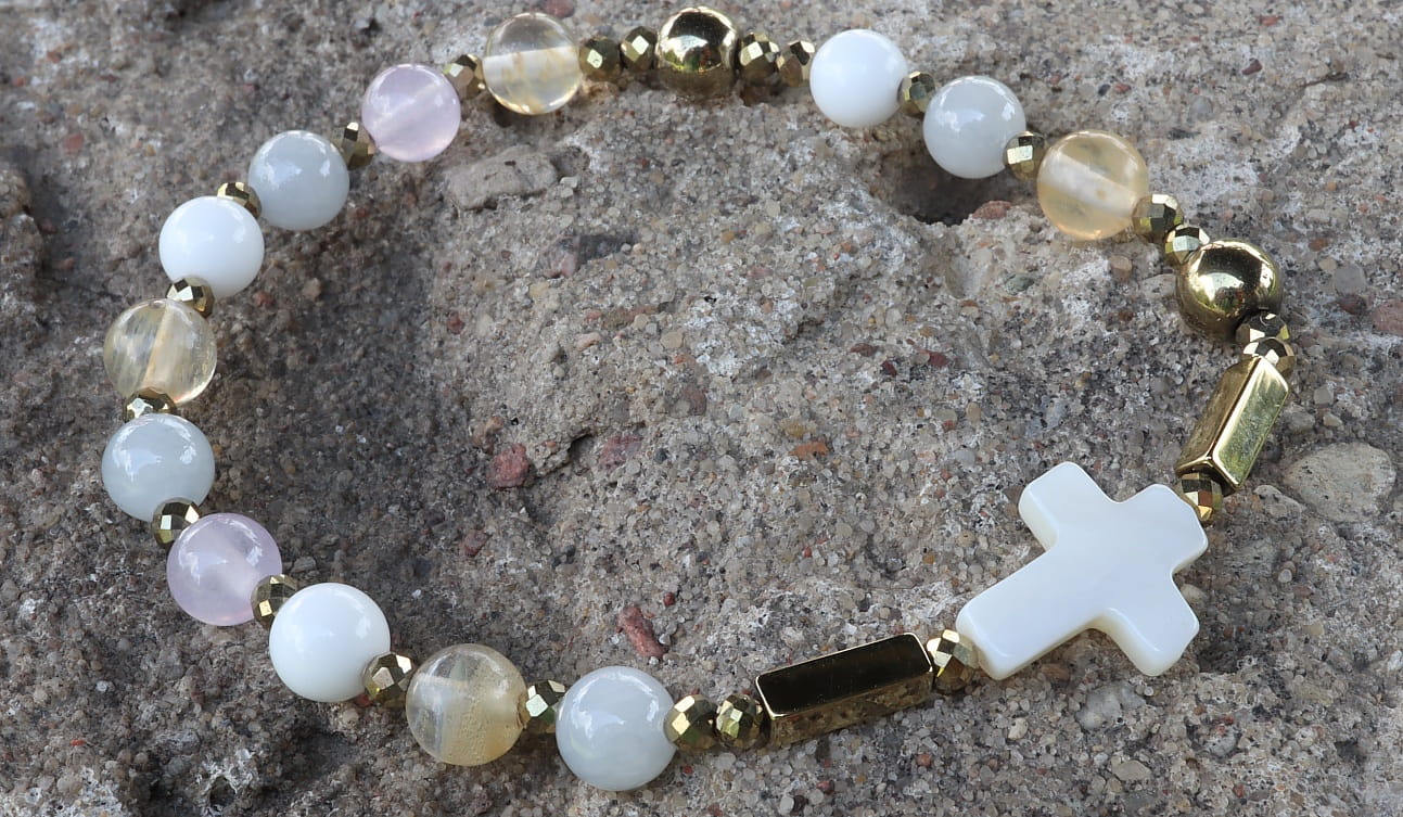 - Różaniec na rękę, idealny dla kobiety, która ceni sobie romantyzm, duchowość i subtelne piękno.