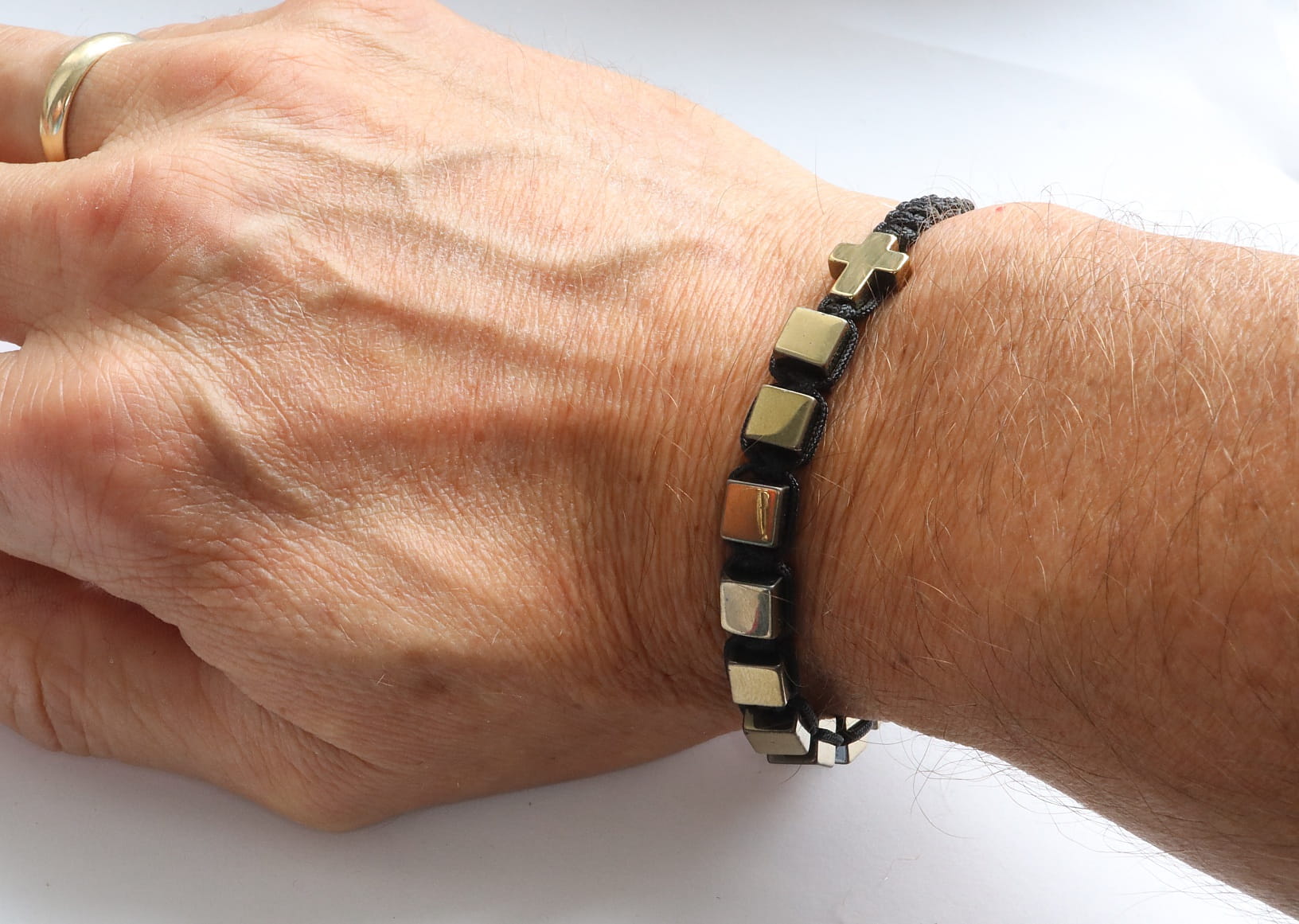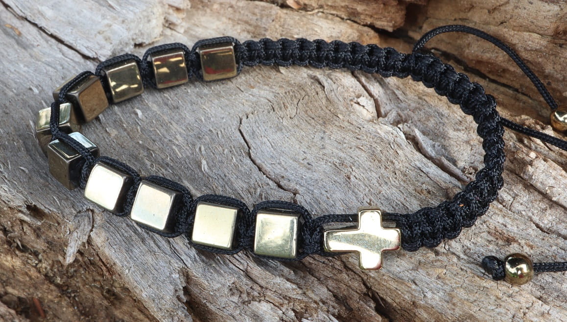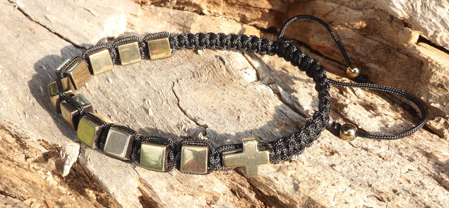 Wyjątkowy różaniec, który łączy w sobie głęboką symbolikę religijną z elegancją współczesnego designu. Każda kostka naturalnego hematytu, o ciepłym, złotym odcieniu, została starannie oszlifowana i nawleczona na wytrzymały, czarny sznurek. Regularna wielkość kostek – 6 mm – zapewnia komfort noszenia i podkreśla minimalistyczny charakter różańca. Hematyt, znany ze swoich uzdrawiających właściwości, wspiera koncentrację, dodaje energii i wzmacnia więź z duchowością. Ten ręcznie wykonany różaniec to nie tylko modlitewny towarzyszący, ale także subtelna ozdoba, która podkreśli indywidualny styl.