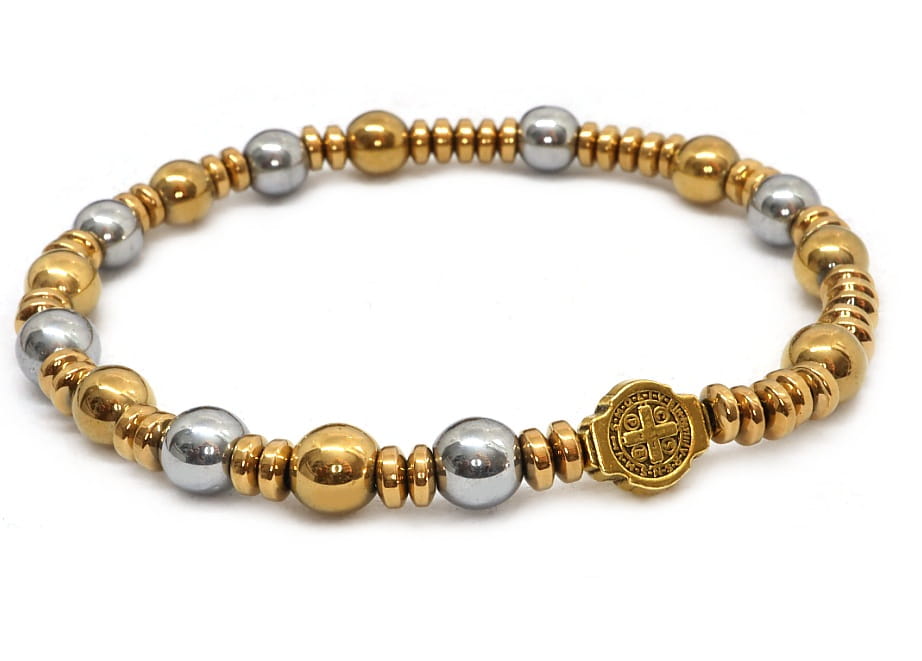 Różaniec bransoletka na rękę hematyt złoty srebrny Św. Benedykt 9152 [038]