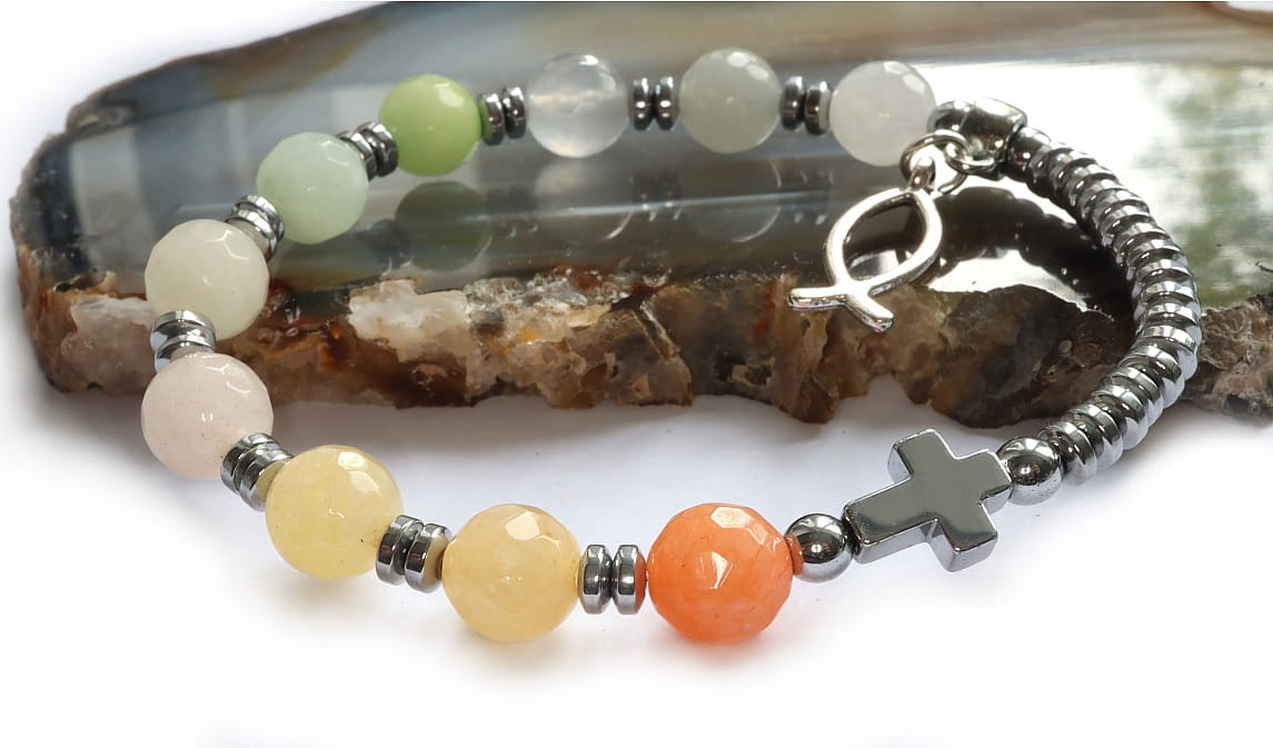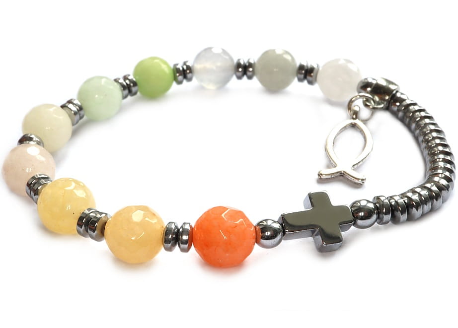 Pastelowy, ciekawy różaniec na rękę w formie wygodnej bransoletki.