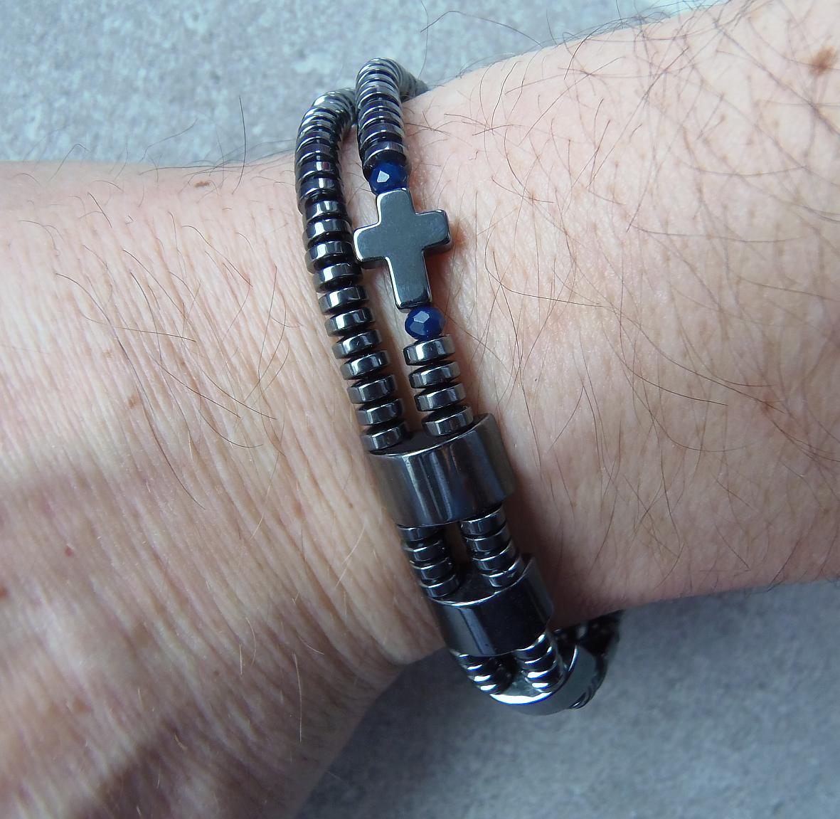 Męski różaniec na rękę z kamieni hematytu.