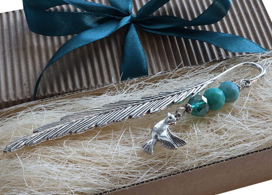 PAMIĄTKA BIERZMOWANIA - Metalowa zakładka do książki w kształcie pióra.