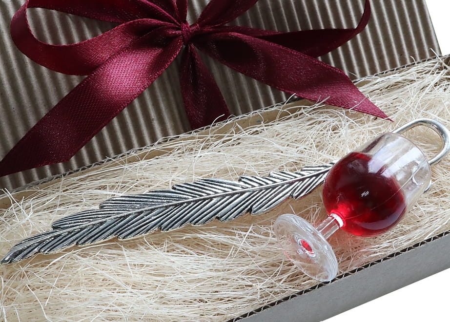 Szukasz oryginalnego prezentu dla miłośnika książek i wina? Nasza zakładka metalowa w kształcie pióra to strzał w dziesiątkę. Precyzyjne wykonanie i minimalistyczny design sprawiają, że zakładka jest zarówno praktyczna, jak i estetyczna. Idealna dla osób ceniących sobie oryginalność i wysoką jakość. Kieliszek z czerwonym winem wykonany jest z żywicy. Idealny gadżet na długie wieczory z książką. Zakładka opakowana jest w ręcznie wykonane eko pudełko z siankiem, przewiązane wstążką w kolorze wina. Polecamy na prezent!