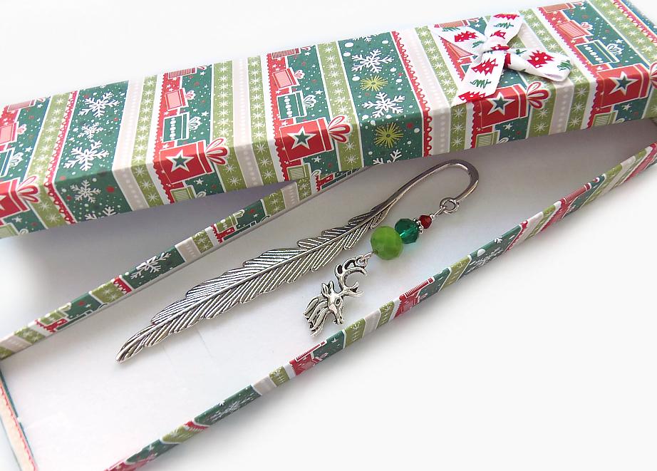 Zakładka ma długość ok 12cm - opakowana jest w ładne, świąteczne pudełeczko. Pudełko jest solidne, odporne na wgniecenia, wykonane z porządnej tektury.