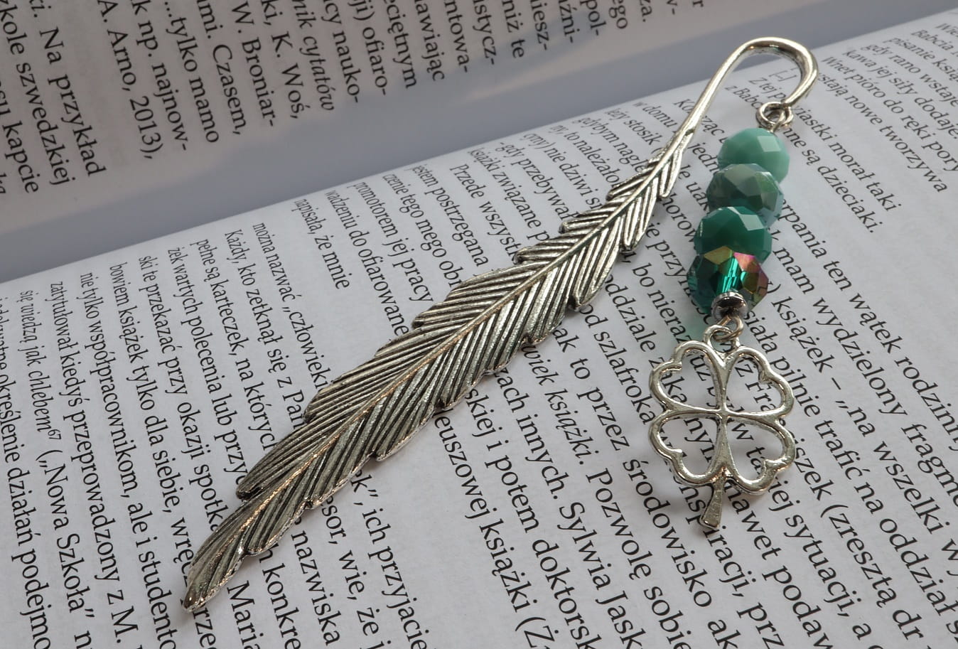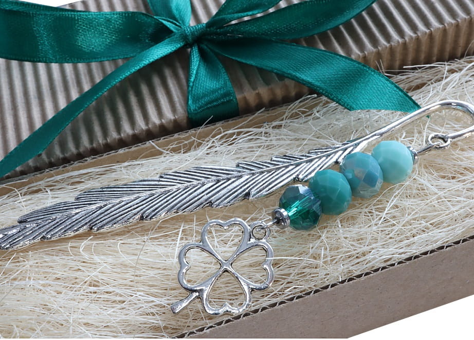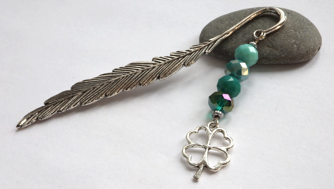 Oryginalna zakładka do książki, której ozdobą jest KONICZYNKA przynosząca szczęście, oraz kryształki rondelle /1cm/