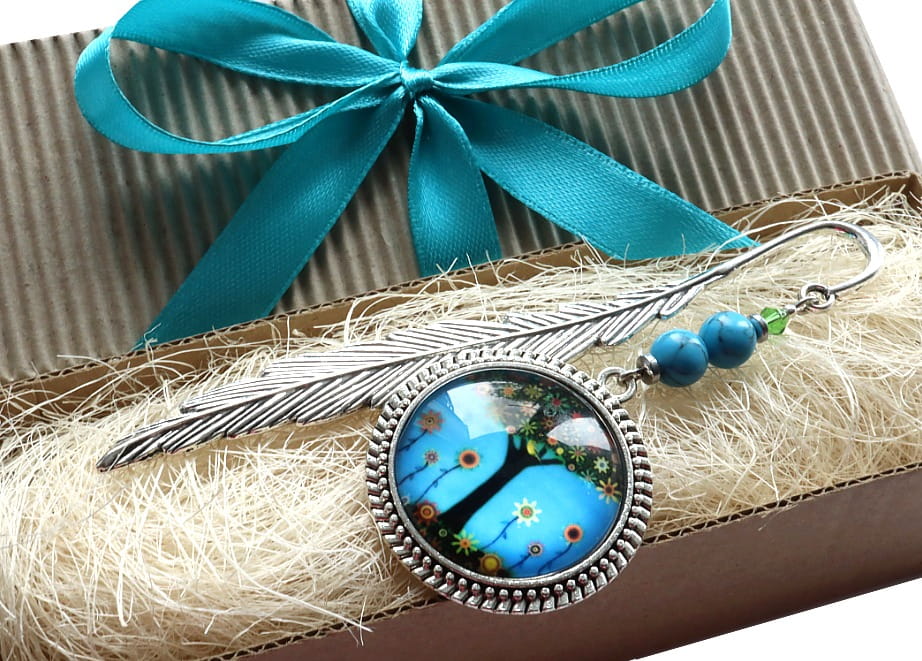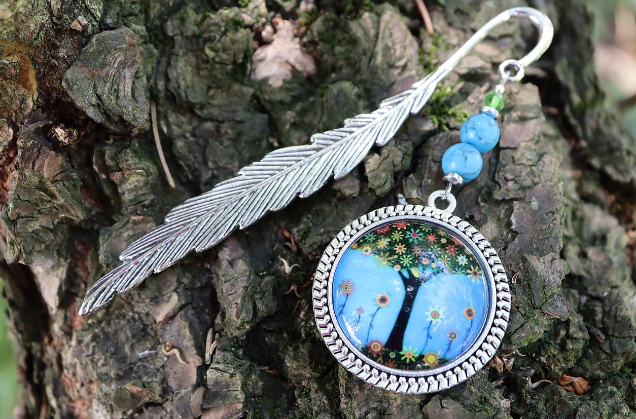 Zakładka do książki, kalendarza, notesu z dużym, eleganckim kaboszonem - kwiatowym drzewkiem.