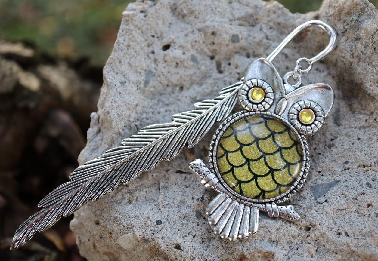 Zakładka do książki, kalendarza, notesu z piękną, dużą, oryginalną sową w złocie.