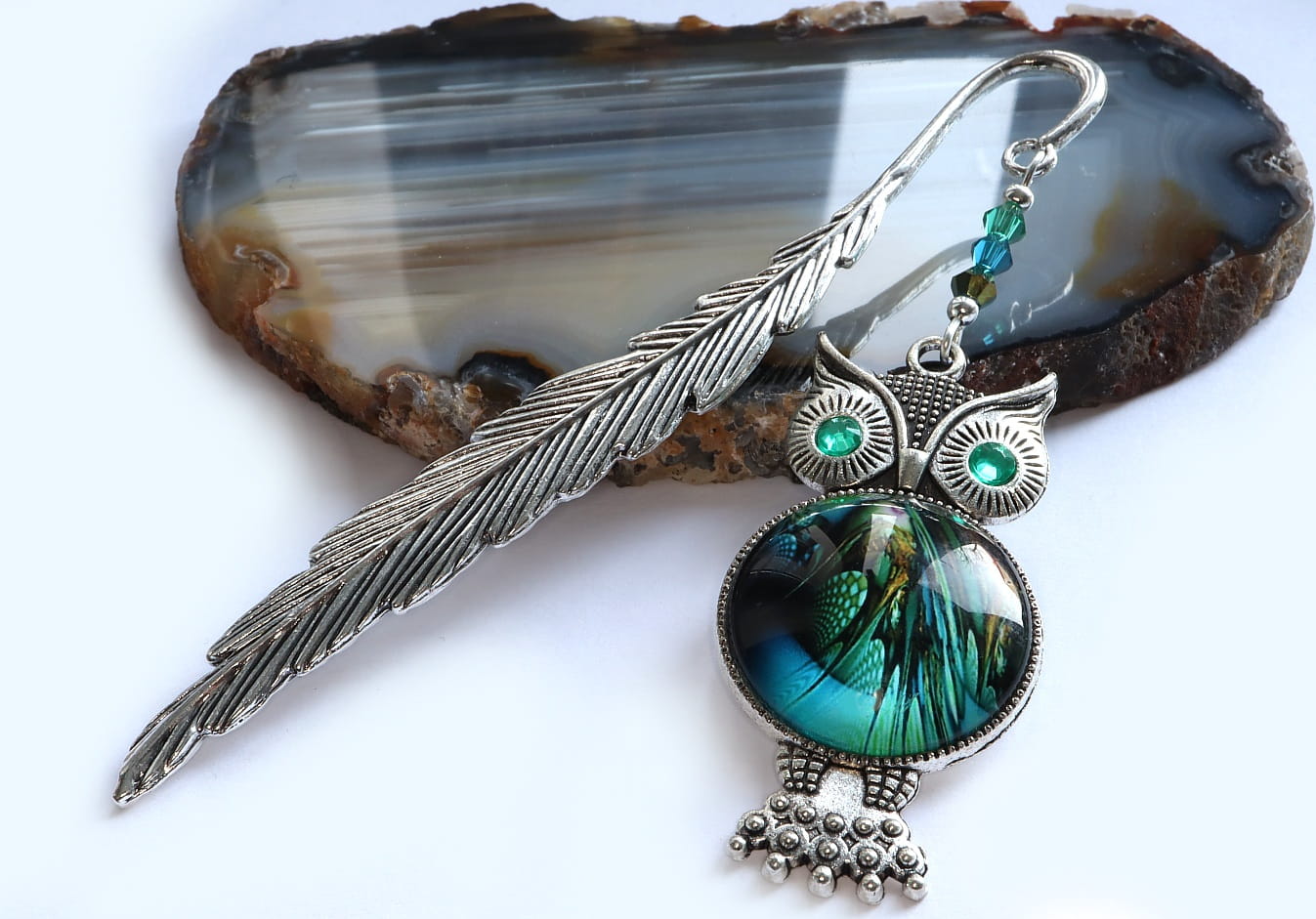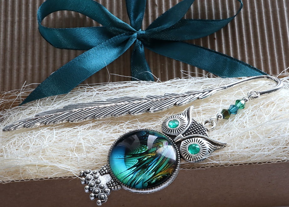 Zakładka ma kształt pióra o długości ok 12cm.