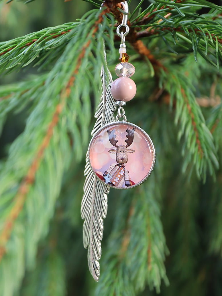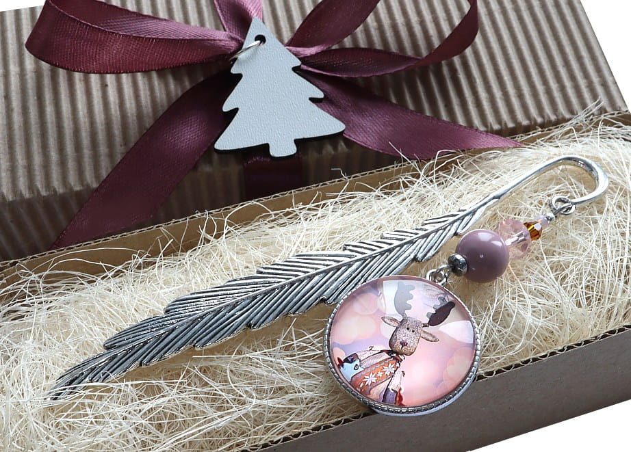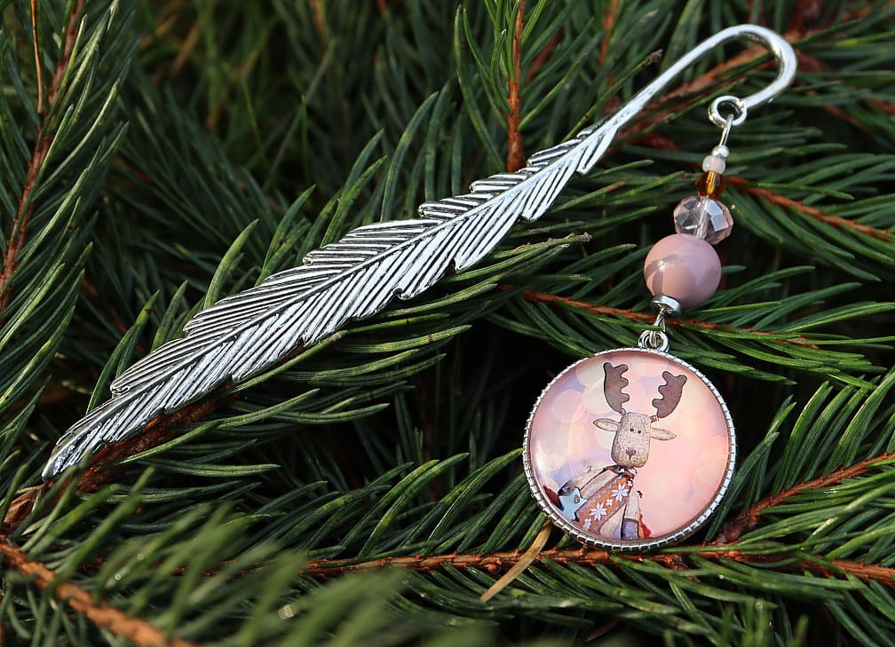 Zakładka do książki, kalendarza, notesu z piękną ozdobą w postaci renifera z ozdobnymi, kolorystycznie dopasowanymi koralikami.