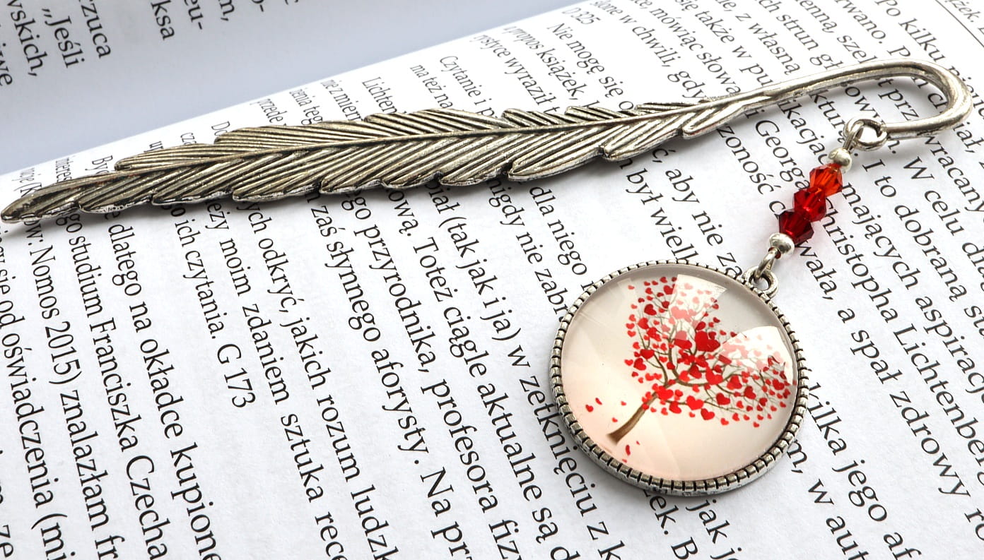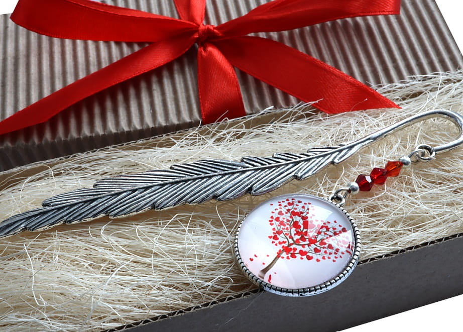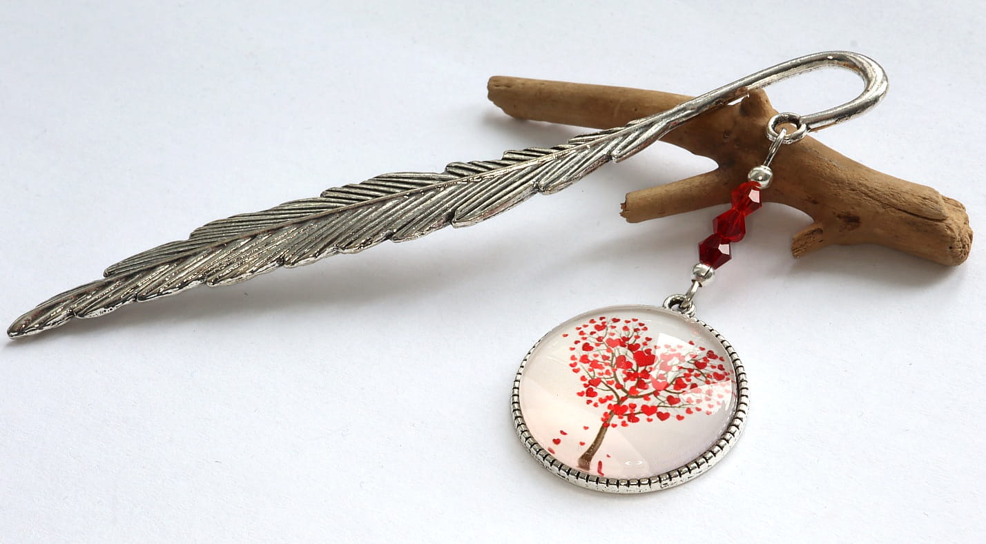 Zakładka do książki z drzewem miłości - pełnym czerwonych serc.
