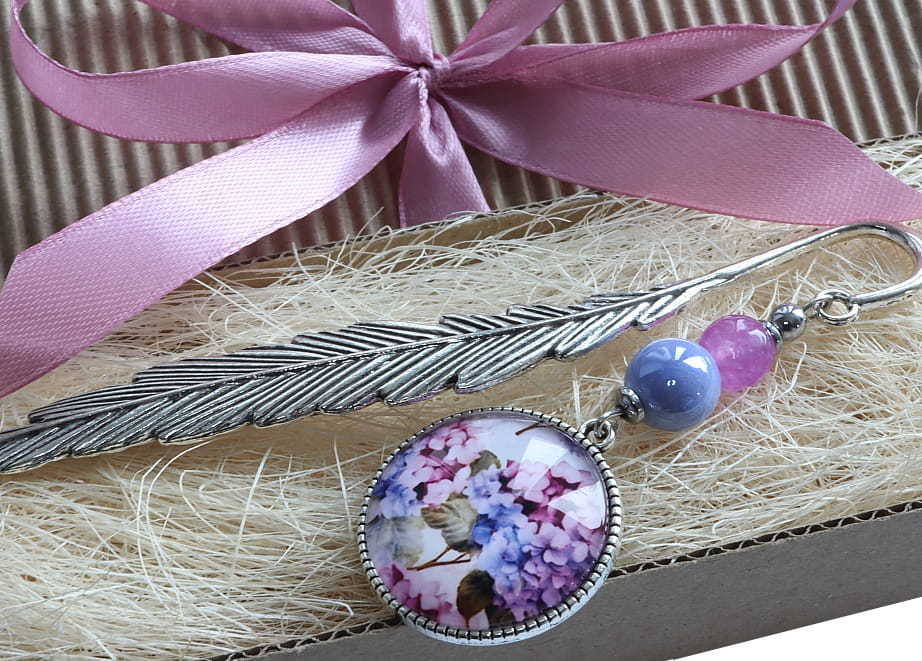 Szukasz subtelnej i romantycznej zakładki do książki, która umili Ci czytanie? Zakładka ze szklanym kaboszonem z hortensjami to idealny wybór! A może szukasz prezentu dla bliskiej osoby? Idealnie trafiony podarek.