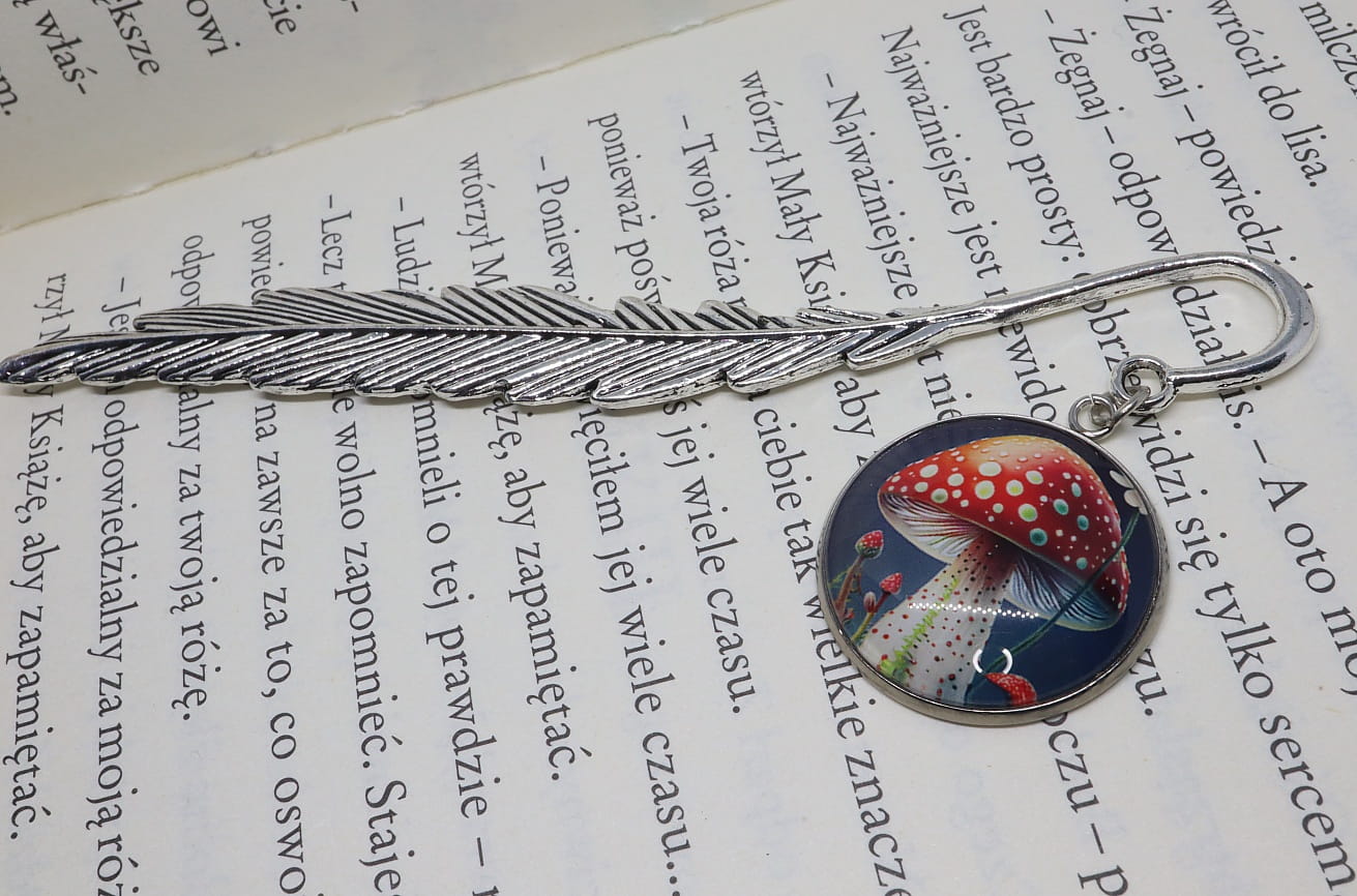 Zakładka jest wykonana w formie metalowego pióra 12cm, co nadaje jej subtelny, vintage'owy charakter i sprawia, że jest trwała. Jest to nie tylko praktyczny przedmiot, ale i piękna ozdoba, która wystaje poza kartki, przypominając o przerwanej lekturze.