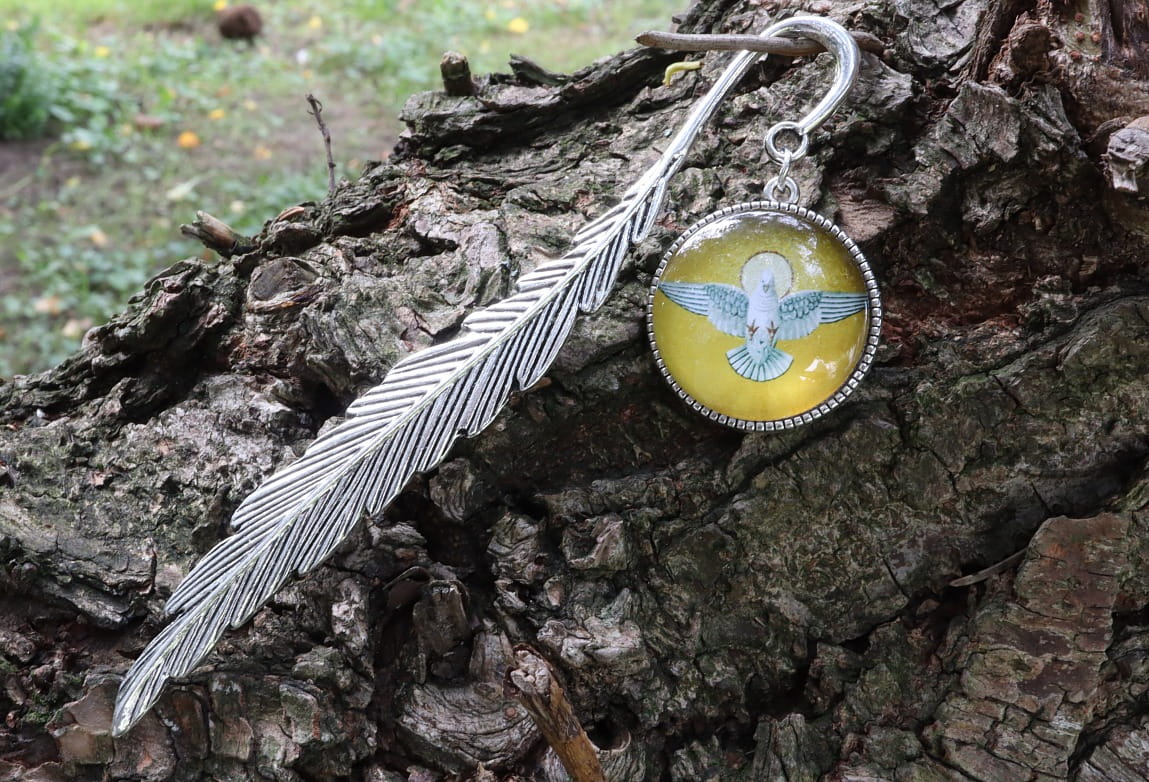 Ozdobą zakładki jest gołębica - symbol Ducha Świętego.
