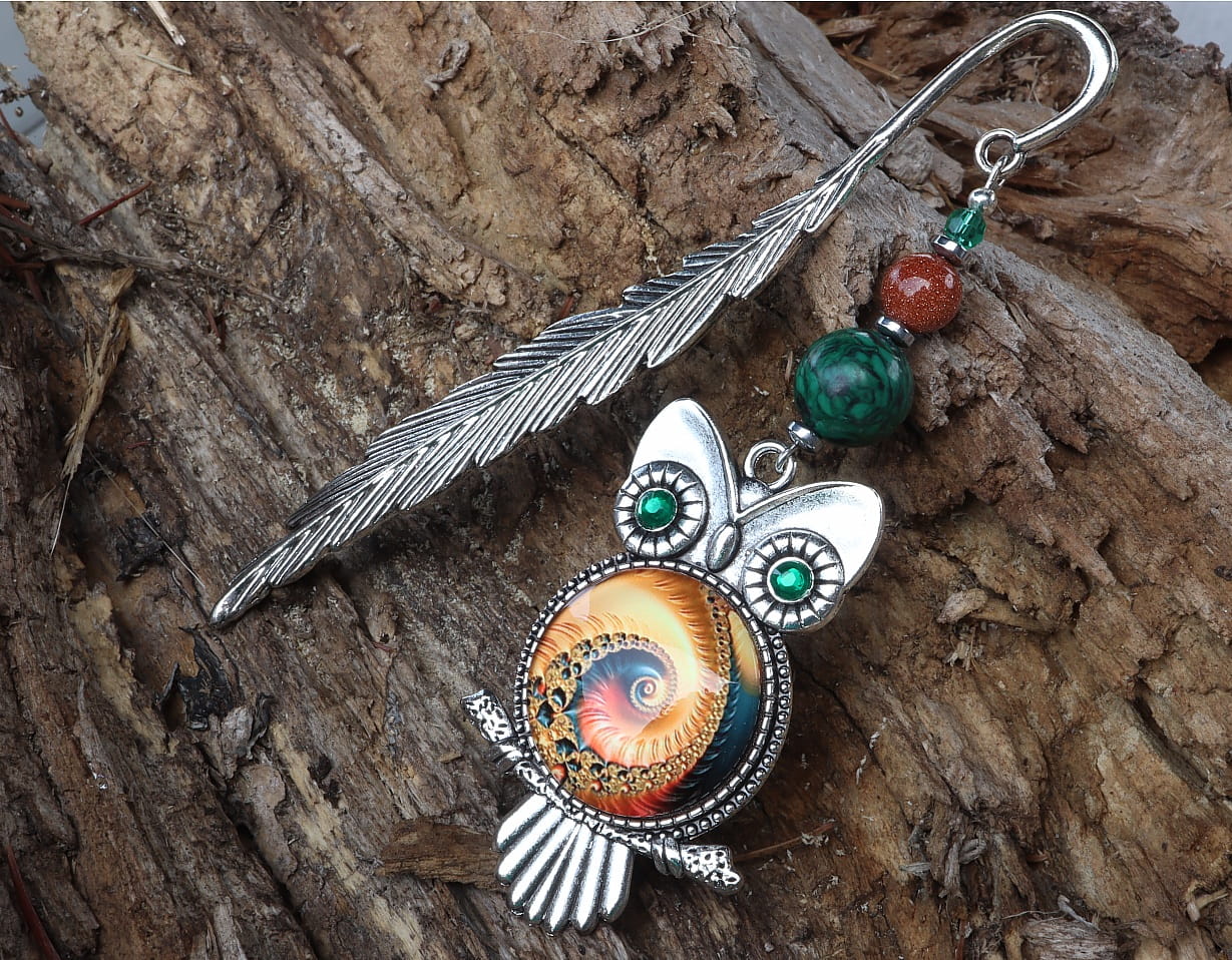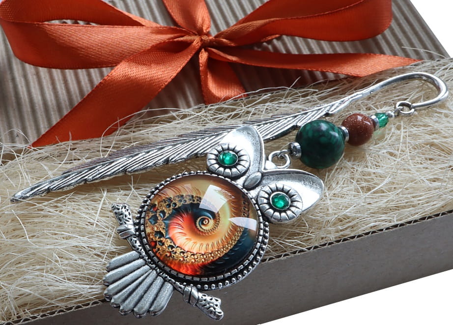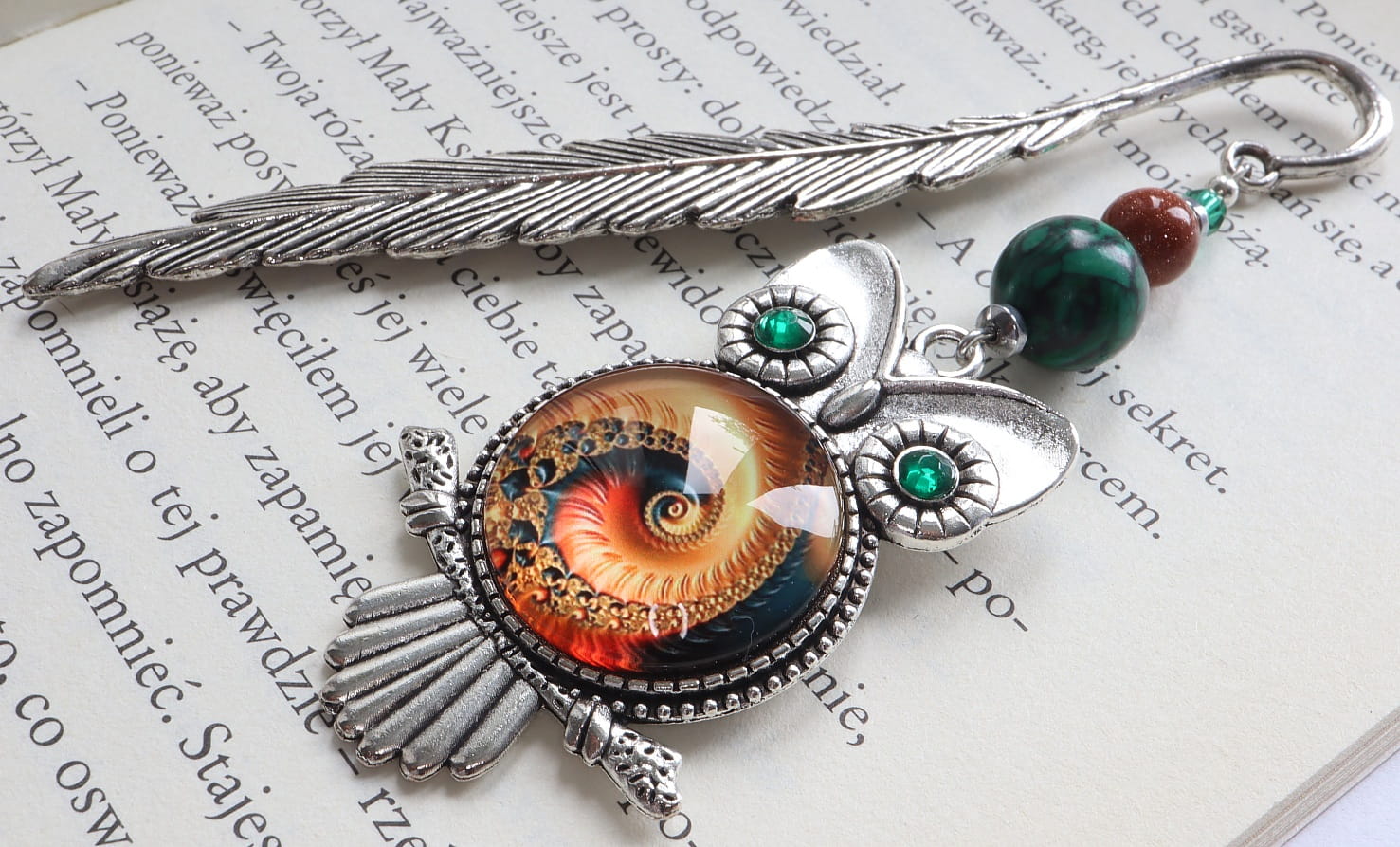Zakładka, która wyróżni Twoją kolekcję. Chcesz, aby Twoje książki były wyjątkowe? Ta zakładka z pewnością spełni Twoje oczekiwania. Niebanalne połączenie metalu, kamieni szlachetnych i naturalnych elementów tworzy unikalną kompozycję. Sowa, symbol wiedzy i tajemnicy, dodaje całości charakteru.