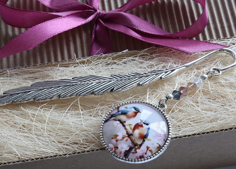 Szukasz wyjątkowej i praktycznej zakładki do książki, która umili Ci czytanie? Zakładka ze szklanym kaboszonem z ptaszkami to idealny wybór!
