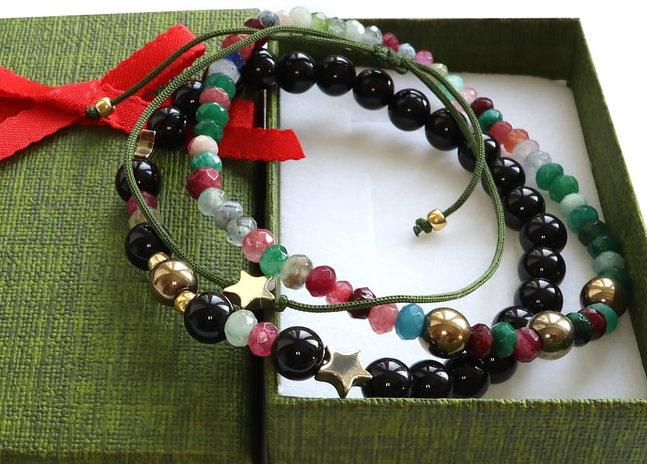 Bransoletki opakowane w ładne, eleganckie pudełeczko.